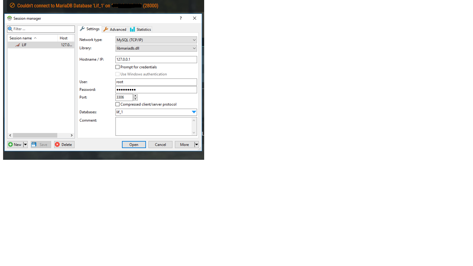 that is the only one that worked on the mySQL if I use the public Ip that my server uses I get the error that could not connect to lif-1 on database public ip