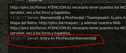 12Ok now if it comes out, but only the text comes out: Server: Enter Pirofeudal. Sure but it does not tell me the name, nor the id, of who enters.